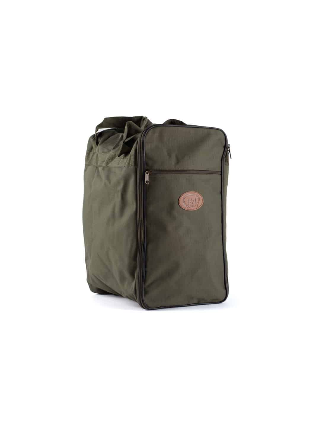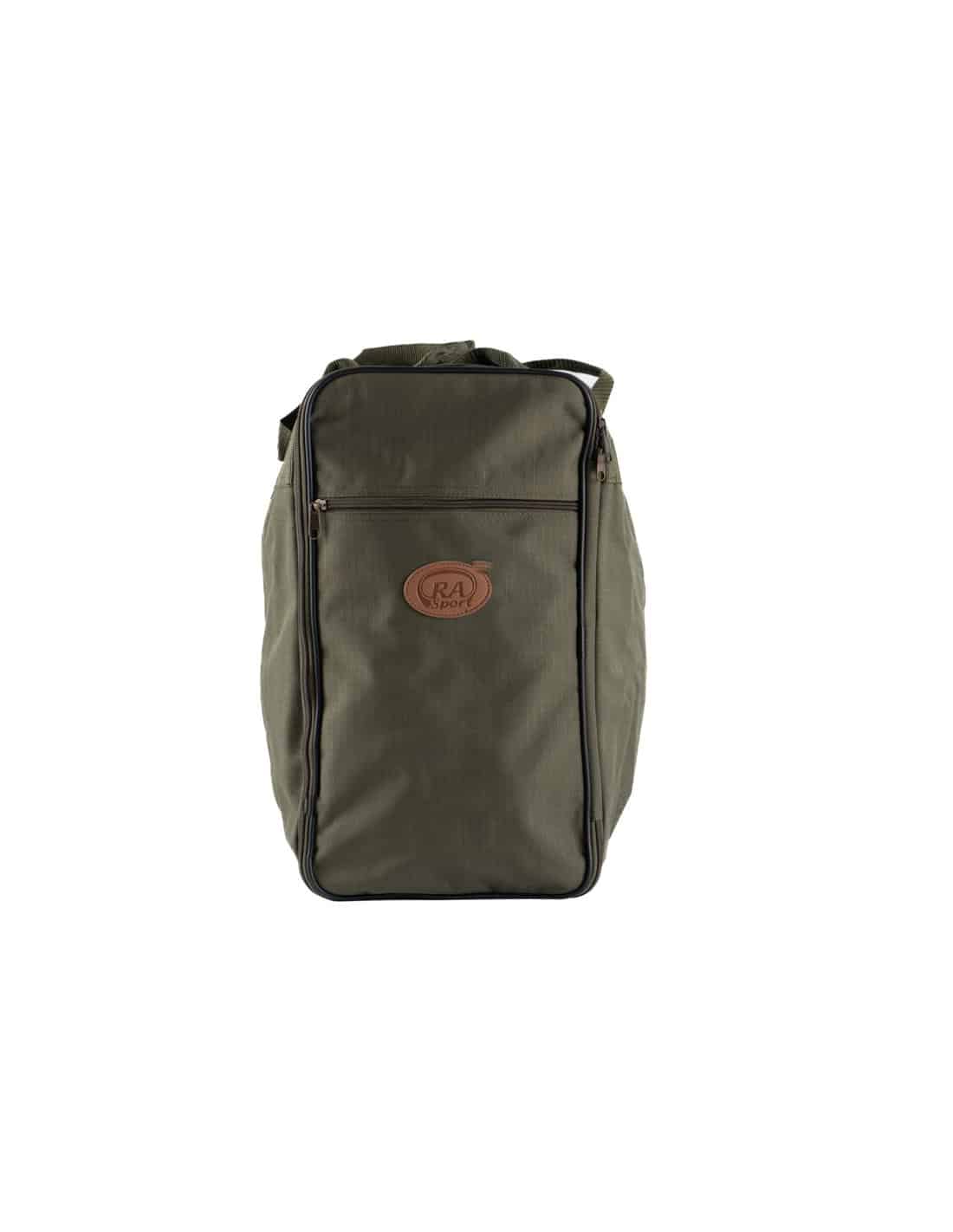 Borsa porta stivali realizzata in 600d poliestere con maniglia e tracolla amovibile. Con tasca esterna porta accessori e base rigida. Misure: cm 45x38x24.